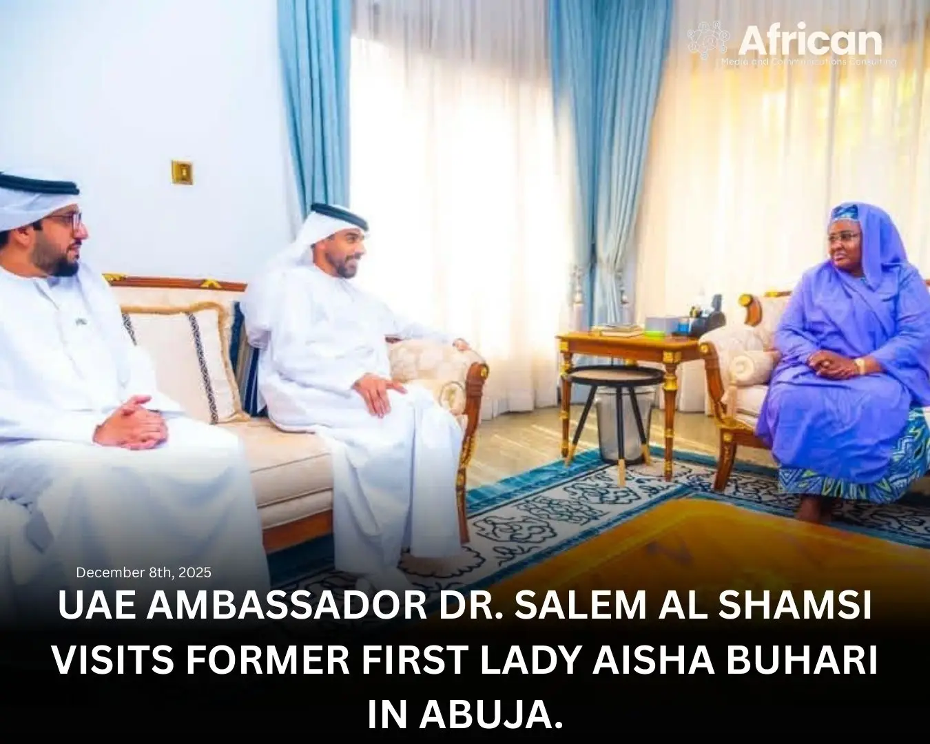 The UAE Ambassador to Nigeria, Dr. Salem Al Shamsi, has paid a courtesy visit to former First Lady Hajiya Aisha…